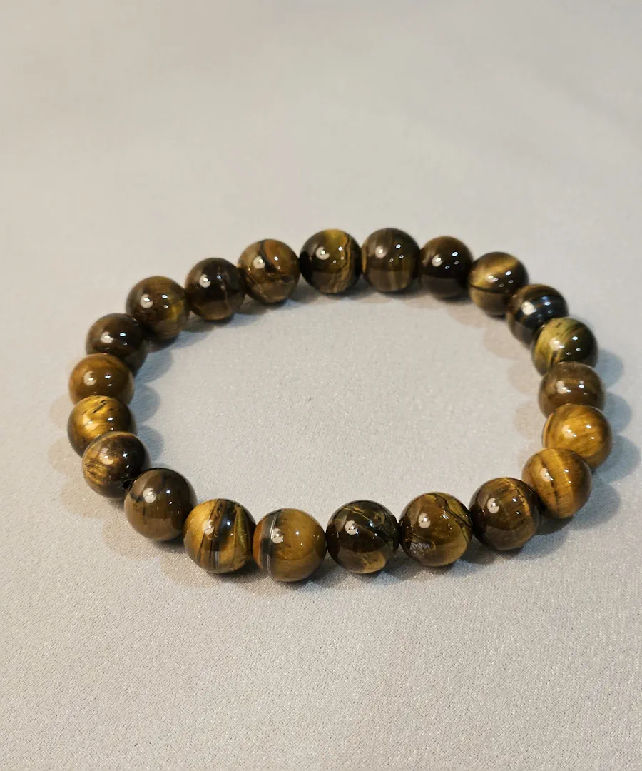 Propriedades principais da pulseira de Olho de Tigre: Equilíbrio entre extremos, discernimento, vitalidade, força, sentido prático, equidade.